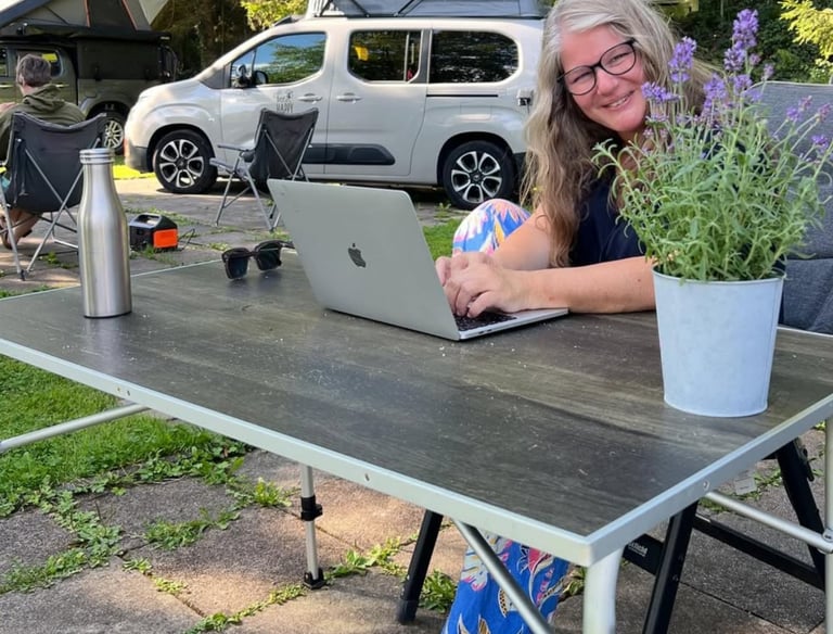 Heute gestalte ich Lernräume – von überall aus. Morgens am Meer aufwachen, tagsüber Workshops halten, abends bei einem guten Gespräch den Tag ausklingen lassen. Mein Büro? Mal ein Stellplatz mit Meerblick, mal ein ruhiger Platz im Wald – ideal für das Arbeiten im Wohnmobil.